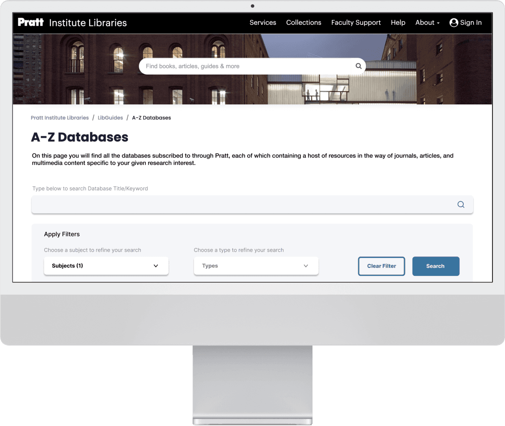 Conducted usability testings and audited Pratt Libraries' A-Z Databases highlight opportunities for visual and usability improvements.